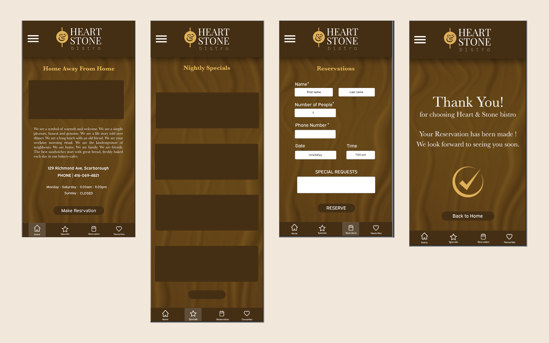 My role was : designing the visual elements of the restaurant app, including layout, typography, color scheme, and overall aesthetic appeal. Create wireframes and prototypes to visualize the app's structure and functionality.